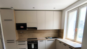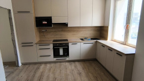 nová kuchynská linka na mieru so zabudovanými novými spotrebičmi (elektrická rúra, elektrická sklo-keramická doska, digestor, umývačka riadu, vstavaná chladnička s mrazničkou, vstavaná mikrovlnná rúra),