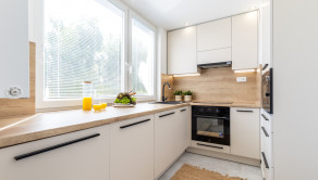 nová kuchynská linka na mieru so zabudovanými novými spotrebičmi (elektrická rúra, elektrická sklo-keramická doska, digestor, vstavaná chladnička s mrazničkou, vstavaná mikrovlnná rúra),