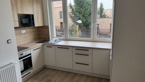 nová kuchynská linka na mieru so zabudovanými novými spotrebičmi (elektrická rúra, elektrická sklo-keramická doska, digestor, umývačka riadu, vstavaná chladnička s mrazničkou, vstavaná mikrovlnná rúra),