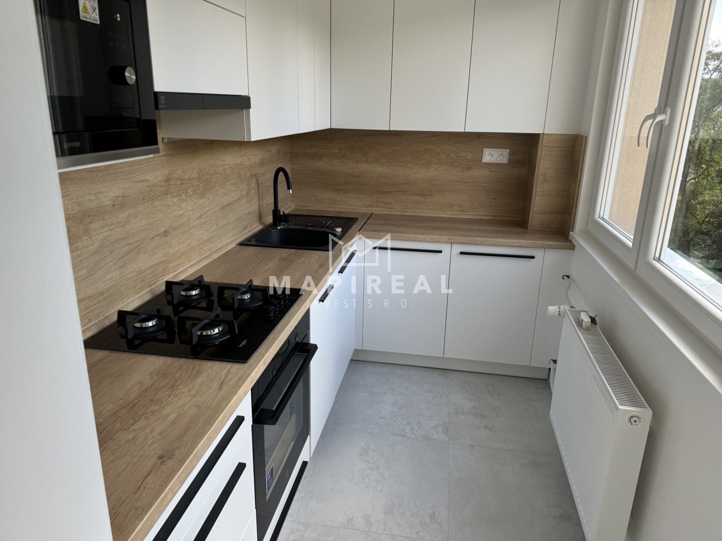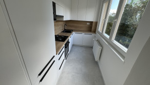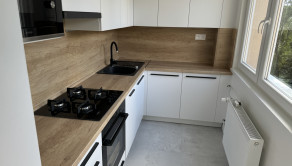 nová kuchynská linka na mieru so zabudovanými novými spotrebičmi (elektrická rúra, elektrická sklo-keramická doska, digestor, umývačka riadu, vstavaná chladnička s mrazničkou, vstavaná mikrovlnná rúra),
