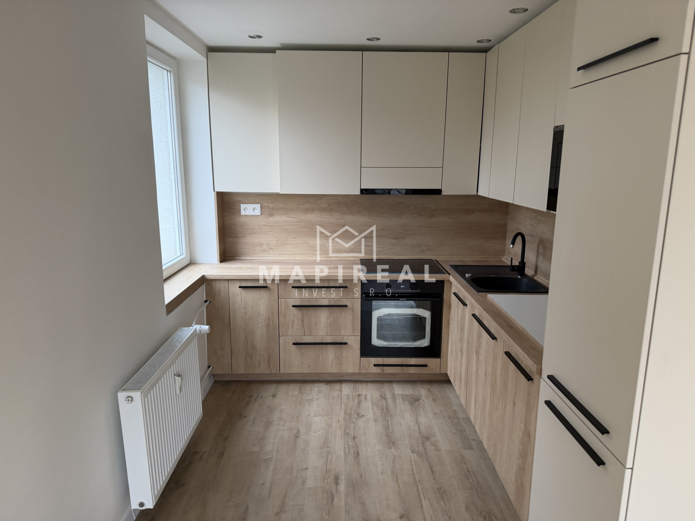 nová kuchynská linka na mieru so zabudovanými novými spotrebičmi (elektrická rúra, elektrická sklo-keramická doska, digestor, vstavaná chladnička s mrazničkou, vstavaná mikrovlnná rúra),